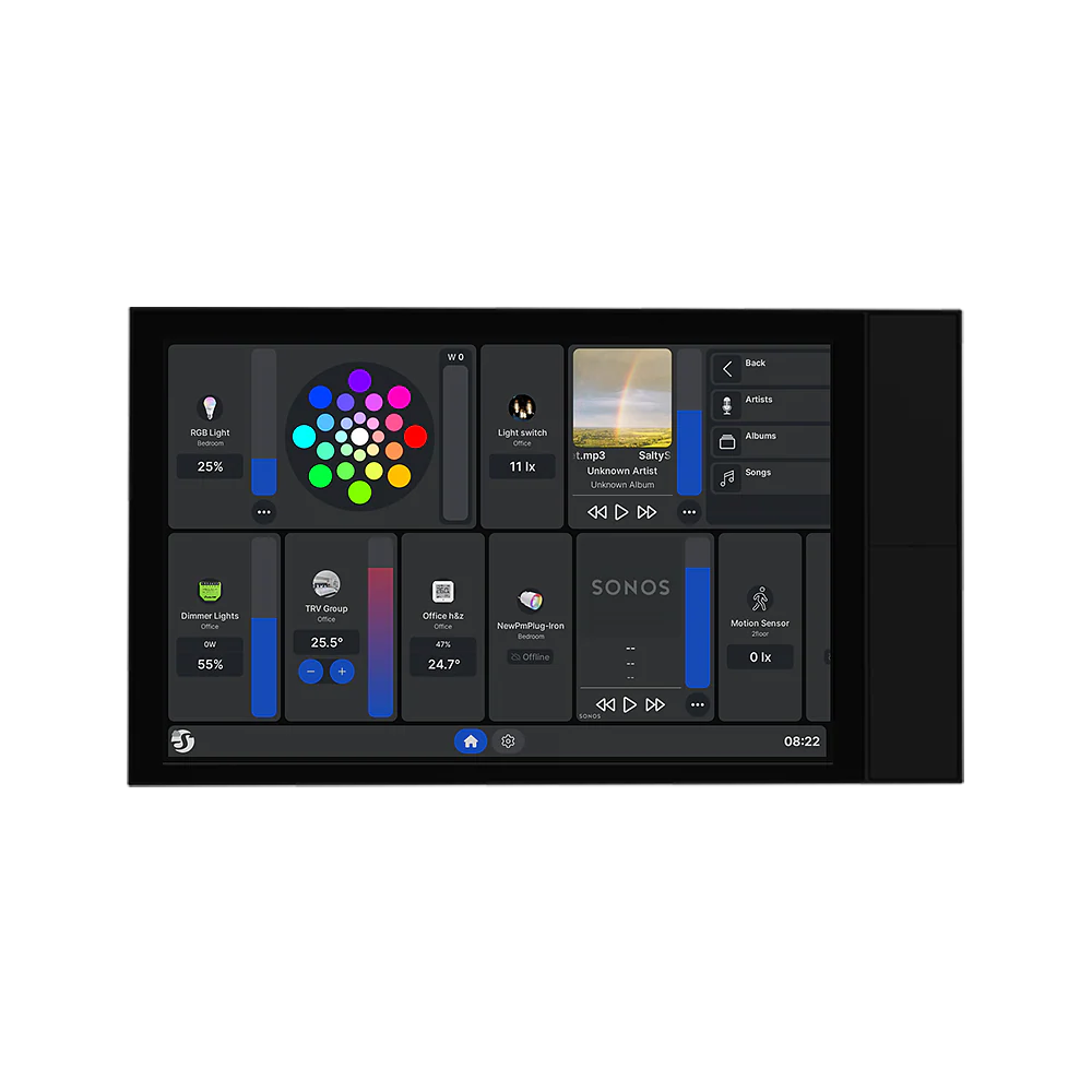 El Shelly Wall Display XL es un avanzado panel de control inteligente con pantalla táctil de 10,1 pulgadas, diseñado para gestionar de forma centralizada todos los dispositivos Shelly y otros sistemas conectados de tu hogar o negocio. Con una interfaz intuitiva, altavoces integrados y funciones de automatización, te ofrece una experiencia completa de control, comodidad y eficiencia energética.